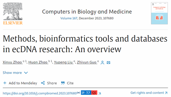 近日,郭志云课题组在国际权威生物信息学领域期刊Computers in Biology and Medicine在线发表了题为“Methods, bioinformatics tools and databases in ecDNA research: An overview”的文章(JCR一区,影响因子7.7分)。365英国官网郭志云老师为独立通讯作者,研究生赵欣宇为第一作者,365英国上市公司官网为通讯作者单位。