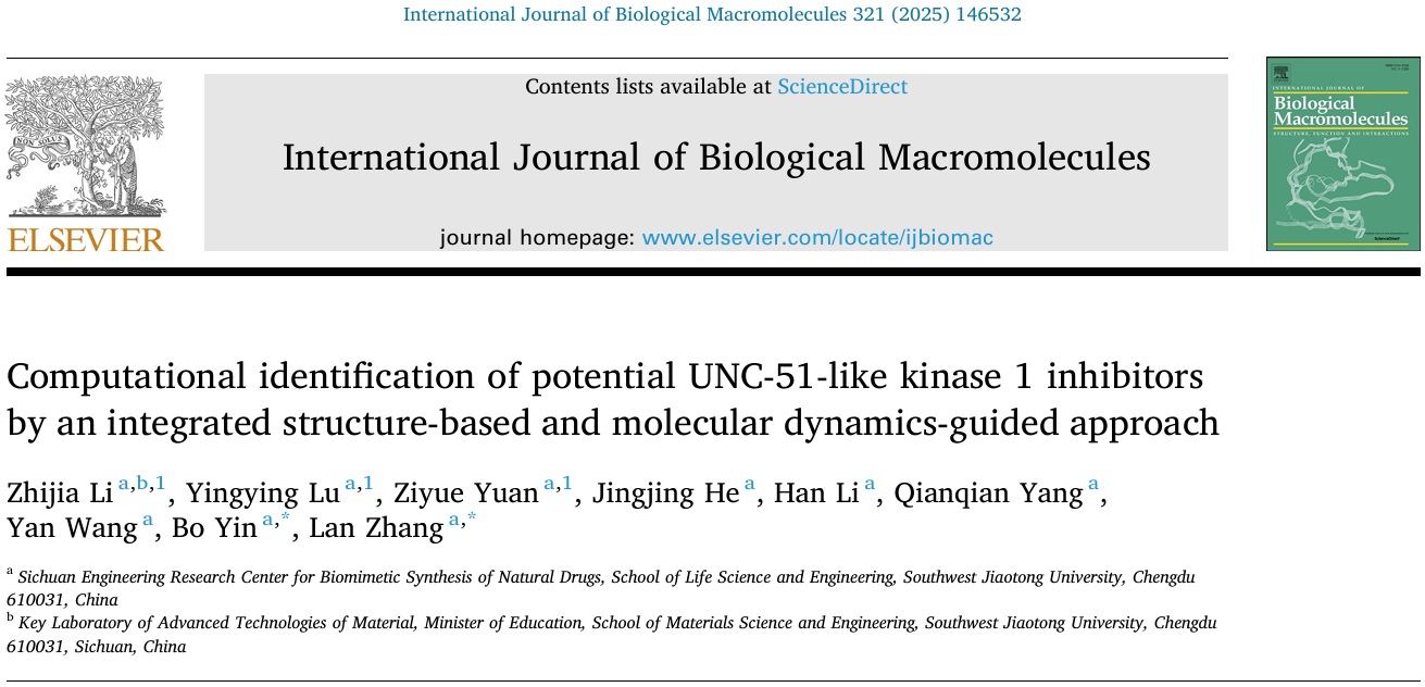 近日,365英国上市公司官网张岚副教授团队在生物学领域期刊《International Journal of Biological Macromolecules》(JCR Q1区,IF=8.5)连续发表两篇关于自噬关键调控因子ULK1(UNC-51-like kinase 1)的论文。ULK1是自噬启动的核心激酶,其异常激活与肺癌等多种癌症的进展和耐药性密切相关,两篇论文分别从药物设计和功能机制解析两个维度探索了ULK1的治疗潜力,为相关疾病的治疗提供了新的思路和策略。