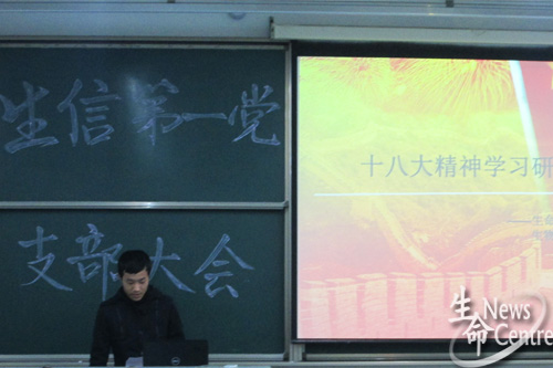 12月11日19:00,为全面贯彻学习党的十八大精神,365英国上市公司官网生物信息学第一党支部于X2422主持召开了十八大精神学习研讨会。政治学院刘玉标老师到场与各位党支部成员分享交流。
