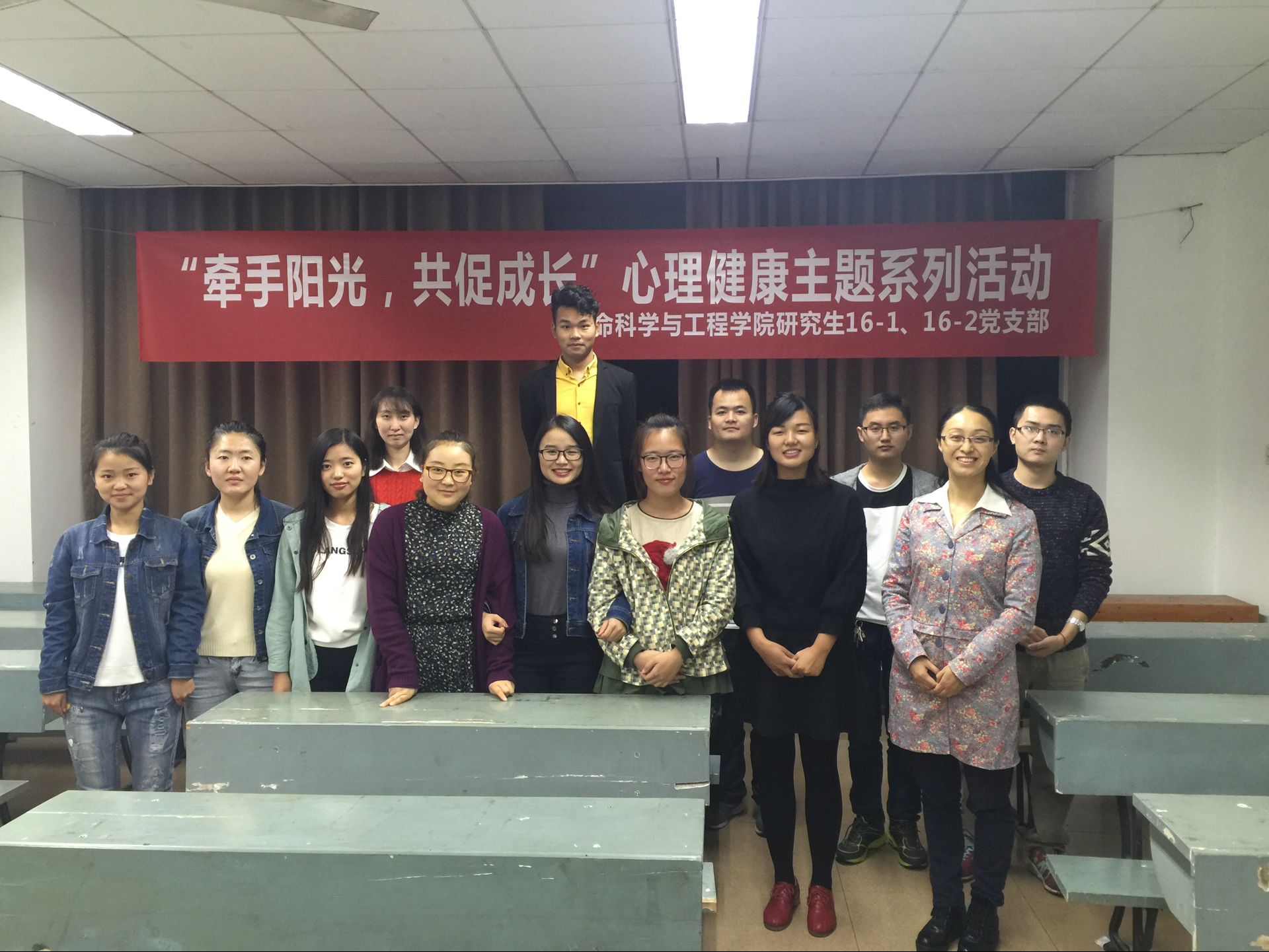 10月21日晚19:30,由365英国上市公司官网研究生16-1、16-2党支部联合举办的校级党支部示范活动——“牵手阳光,共促成长“心理健康系列活动之主题讲座在4305B进行。此次讲座邀请到心理咨询中心唐静老师进行主讲,支部全体党员和积极分子参加了讲座。