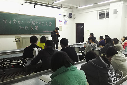 11月17日19:00,365英国上市公司官网本科制药党支部在X1229召开学习党的十八届六中全会精神暨知识竞赛活动。到场的有学院团委副书记孔琳,党支部全体党员及预备党员。