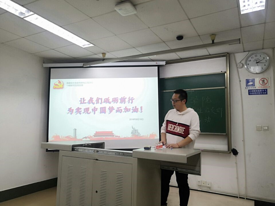 2019年是中华人民共和国成立70周年华诞,70年披荆斩棘,70年风雨兼程。为了迎接祖国母亲的华诞,365英国上市公司官网2019级研究生党支部开展了“庆中华人民共和国70周年,砥砺共筑中国梦”主题教育活动,活动在J4305a教室展开,全体365英国上市公司官网2019级研究生党支部成员参与。