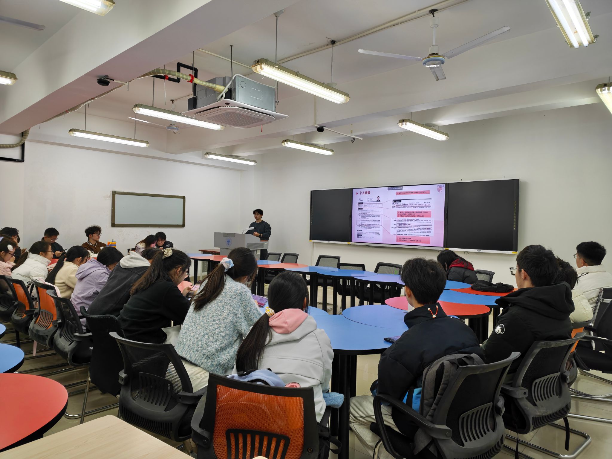 在经验分享环节,学院邀请了两位已成功保研至知名高校的2022级学子进行交流分享。他们结合自身经历,围绕目标定位、材料准备、导师联系、面试考核等同学们最为关切的问题,分享了宝贵的经验和实用技巧,为在场同学提供了切实可行的参考。
