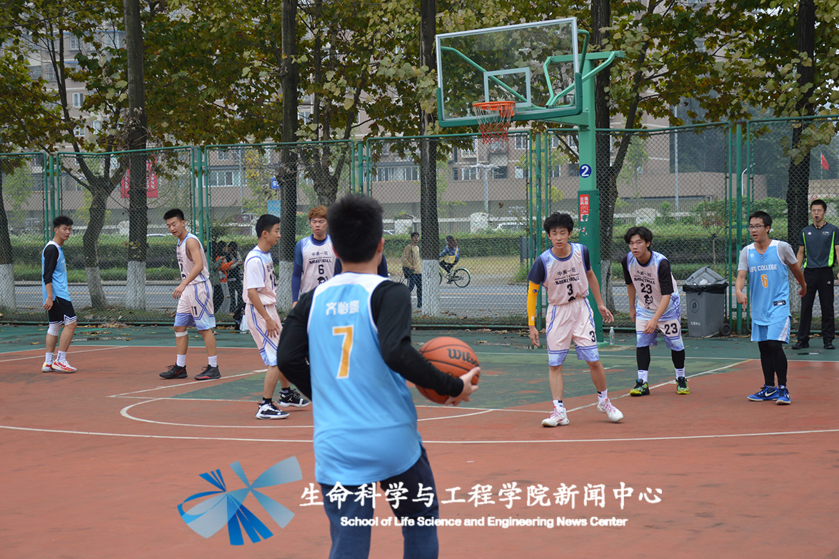 两只队伍的球员都已在赛前认真做好了准备,随着裁判的哨响声响起,比赛正式开始。由中美一班率先取得球权,只见他们带球突破,率先拿下了比赛的首分,而生工三班的球员也不甘落后,获得球权后迅速展开反击,很快追平了比分。之后在双方球员激烈的拼抢与对抗中,双方逐渐拉开了比分。双方球员在一次次抢断及上篮中将比赛推向高潮。每一次进球都引起场边观众的阵阵喝彩,在呐喊与欢呼声中,上半场比赛结束的哨声吹响,中美一班以52:24的大比分优势暂时领先。