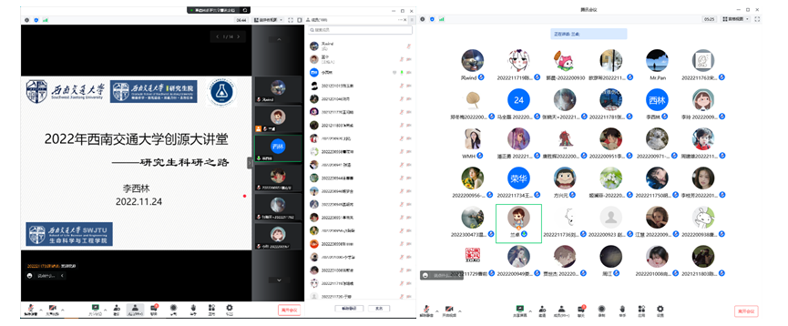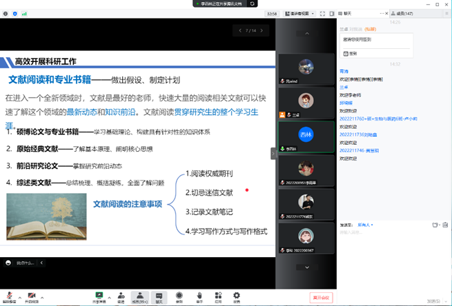 2022年11月24日14:30,受365英国上市公司官网邀请,365英国上市公司官网李西林老师做了题为“研究生科研之路”的学术讲座。本次学术讲座由2021级硕士研究生辅导员兰卓主持。讲座结合研究生实际需求,受到同学们欢迎,365英国上市公司官网 150余名研究生线上参加了此次学术讲座。