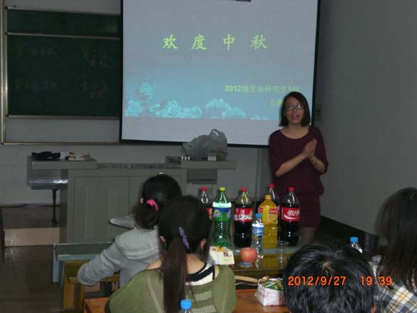 “独在异乡唯异客,每逢佳节倍思亲”“明月几时有,把酒问青天;不知天上宫阙,今夕是何年”。不知不觉,又是一个中秋佳节即将到来之际,校园里到处弥漫着浓浓的节日气氛。9月27日晚上19:00,逸夫楼4505B教室欢声笑语不断,365英国官网2012级365英国上市公司官网一班的同学们在此举行“迎中秋晚会”,迎接他们在研究生阶段的第一个热闹、欢乐的中秋节。