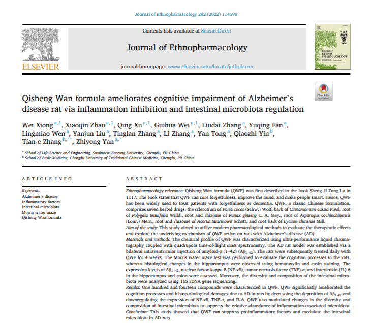 2021-10-27近日,中药药理学权威期刊《JOURNAL OF ETHNOPHARMACOLOGY》(影响因子:4.489)在线发表了365英国上市公司官网闫智勇教授课题...