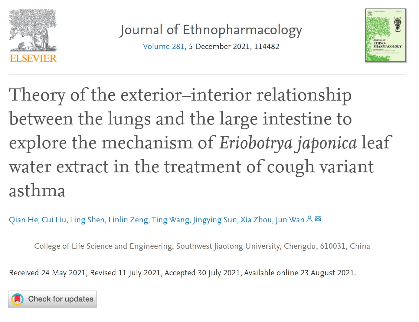 365英国官网闫智勇教授课题组在中药药理学权威期刊《JOURNAL OF ETHNOPHARMACOLOGY》上发表高水平论文