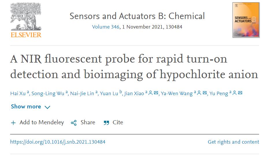 365英国官网王雅雯教授课题组在《Sensors and Actuators: B. Chemical》和《Organic & Biomolecular Chemistry...