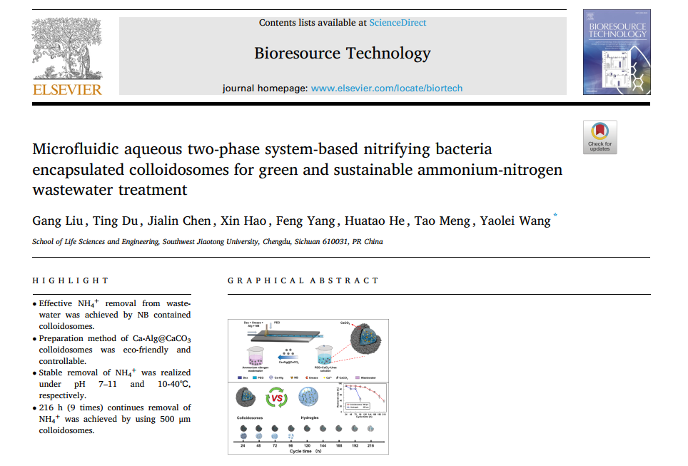 365英国官网“微纳米生物技术”创新团队王垚磊老师在国际生物工程与环境领域顶级期刊Bioresource Technology发...